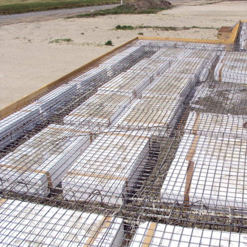 Фундамент: монолітна залізобетонна утеплена «шведська» плита з інтегрованими мощенням та контурами опалення
